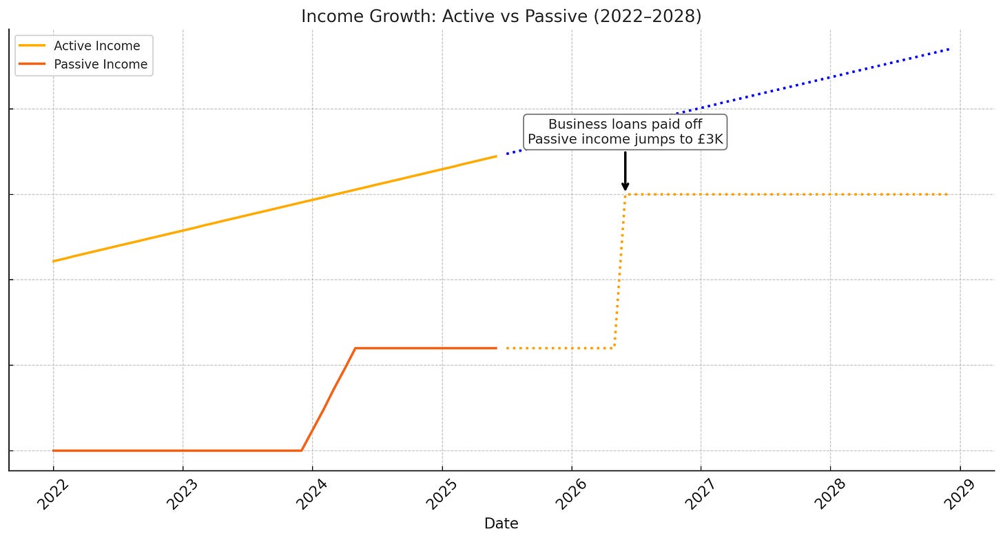 Even if we don't take on anything new, we're locked into £1,195/month in passive income until Sept 2026. Once the leveraged deals are paid off, that figure jumps to £2,975/month. Not forever—just a two-year run—but enough to trigger my goal of:
